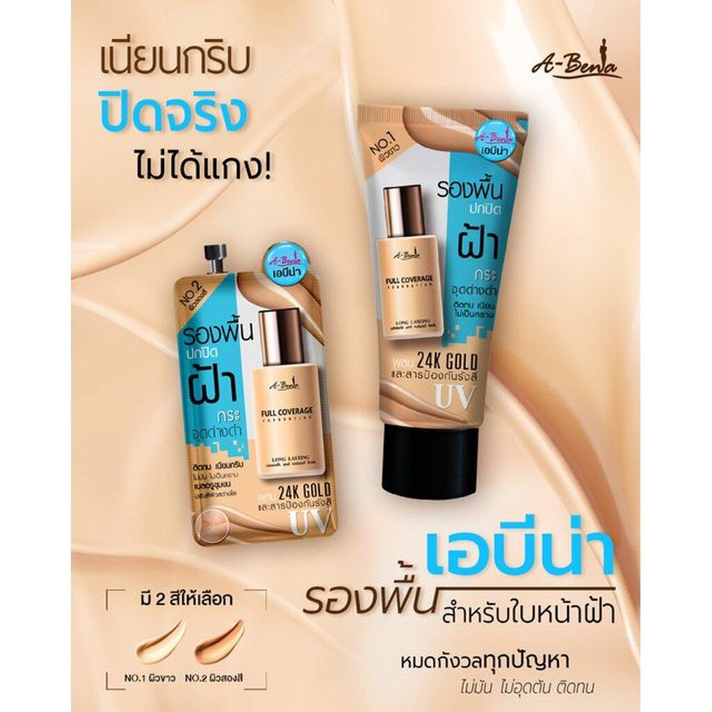 A-Bena เอบีน่า รองพื้น สำหรับใบหน้าฝ้า ผสมทองคำแท้ 24k และสารป้องกันรังสี UV ไม่มัน ไม่อุดตัน ติดทน No.1 ผิวขาว(6 g.) เลขที่ใบจดแจ้ง 10-1-6500010023