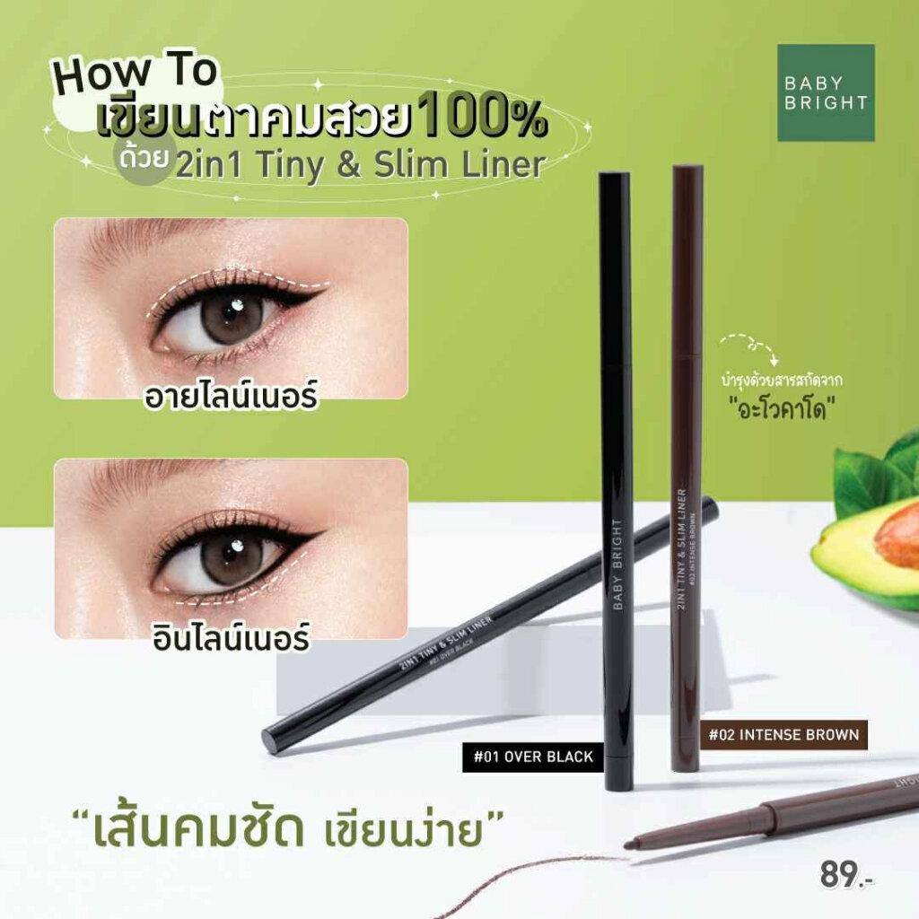 BABY BRIGHT ทูอินวันไทนี่แอนด์สลิมไลน์เนอร์ 0.1G รายละเอียดสินค้า 2 in 1 อายไลน์เนอร์และอินไลน์เนอร์เนื้อครีมในแท่งเดียว! เติมแต่งดวงตาให้ดูสวย คมชัด มีเสน่ห์น่าหลงใหล มาพร้อมกับดินสอหัวหมุนแบบออโต้ขนาดเรียวเล็กเพียง 1.5 มิลลิเมตร เส้นคม เขียนง่าย นุ่มลื่น ติดทนนาน กันน้ำ กันเหงื่อ มีสารสกัดจากน้ำมันอะโวคาโด (Avocado Oil Extract) ที่อุดมไปด้วยคุณประโยชน์จากวิตามิน A, D และ E ช่วยต้านอนุมูลอิสระ พร้อมทั้งโปรตีนจาก เลซิทิน (Lecithin), เบต้าแคโรทีน (Beta-carotene) และกรดไขมันไม่อิ่มตัว ช่วยลดเลือนริ้วรอย บำรุงผิวรอบดวงตาให้ชุ่มชื้น ไม่ระคายเคือง เติมเสน่ห์ให้ดวงตาคมสวย ยาวนานตลอดวัน วิธีใช้ ดึงเพื่อเปิดฝาผลิตภัณฑ์ออก หมุนบริเวณหัวดินสอขึ้น วาดชิดตามแนวขอบตาบนจากหัวตาไปหางตา และสามารถวาดตามแนวขอบตาด้านในทั้งด้านบนและด้านล่างได้ตามต้องการ Product Info Make your eyes look mesmerizingly beautiful than ever before with this 2in1 cream eyeliner & inliner pencil! With a 1.5mm slim tip to create sharp and smooth lines that last, this no-fuss automatic liner pencil boasts a waterproof and sweat-proof formula that won’t budge. It is infused with avocado oil extract that’s packed with vitamins A, D, and E to fight free radicals. Proteins from Lecithin, Beta-carotene, and unsaturated fatty acids help minimize the look of wrinkles, moisturize the eye area while being gentle to the skin. How To Use Pull the cap off and twist the pencil up a bit. Apply it along the upper waterline from inner corner to outer corner of your eye. Repeat for the lower waterline for a more intense look. ![]() ![]() ![]() ![]() ![]() ![]() ![]() ![]() ![]() ![]() ![]() |
